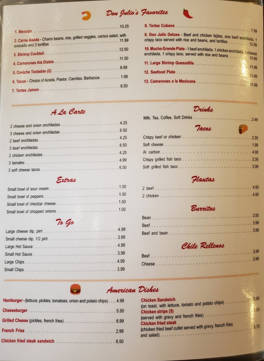 Welcome to Don Julio Mexican Restaurant and American Buffet, located at 404 2nd St, Hico, TX. This hidden gem blends vibrant Mexican flavors with classic American comfort foods, making it a must-visit destination for food lovers. The menu features an array of delectable options, including mouthwatering enchiladas, flavorful flautas, and savory quesabirria tacos. Diners can also indulge in hearty American classics like the hamburger, chicken fried steak, and grilled cheese, ensuring there's something for everyone.